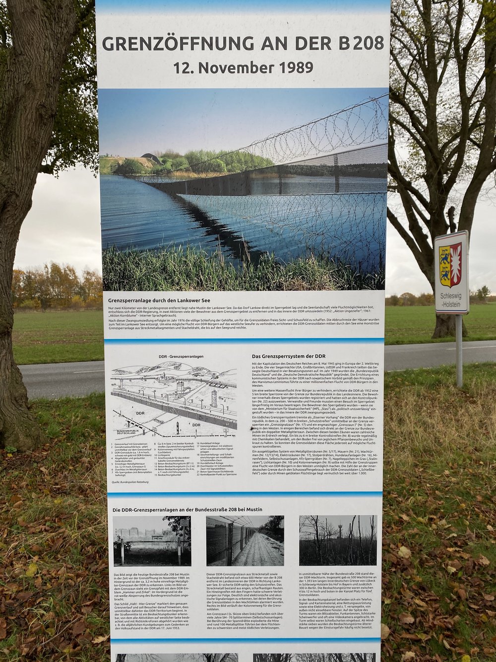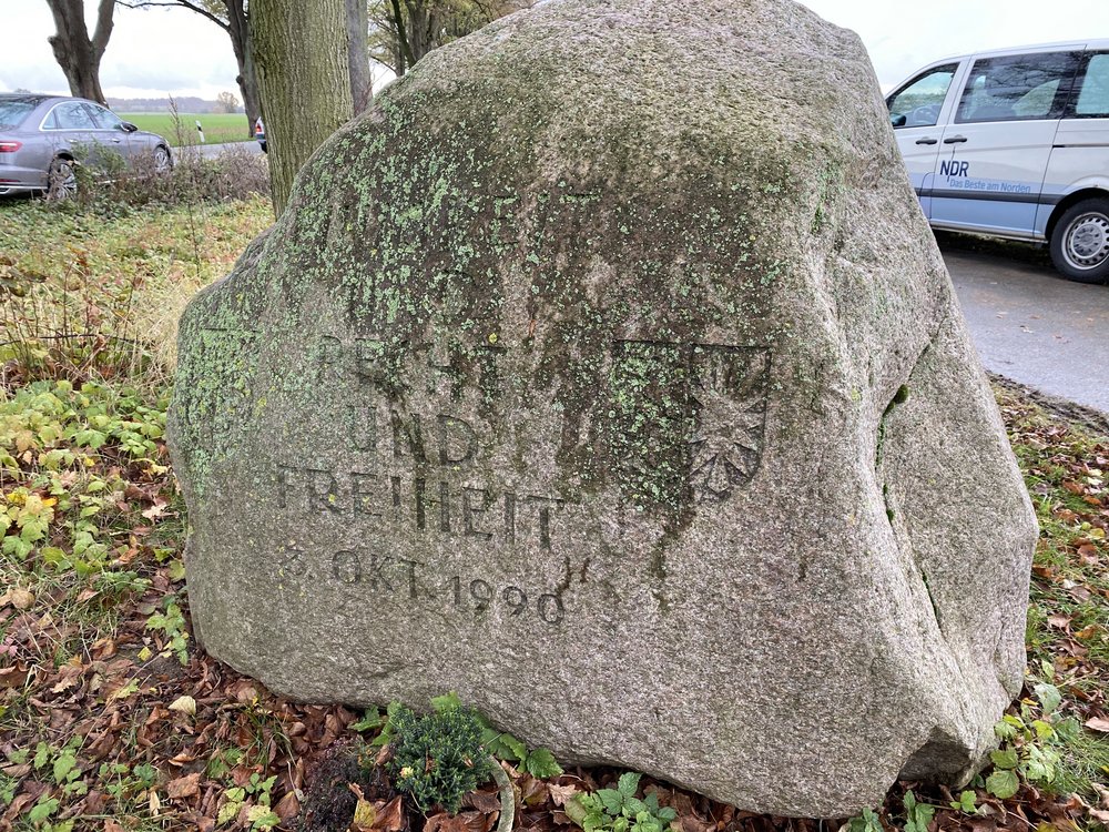 Von der ehemaligen Grenze selbst ist nichts mehr zu sehen. Nur ein Gedenkstein und eine Infotafel erinnern an dieser Stelle an die überwundene Teilung.