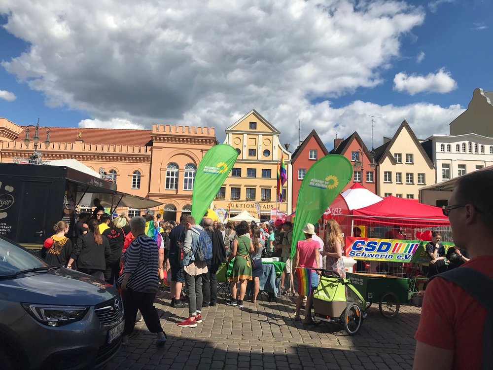 Am Samstag, den 30. Juni fand in Schwerin der jährliche Christopher Street Day statt. Als Grüne aus Nordwestmecklenburg haben wir die Demonstration unterstützt, weil wir uns für gleiche Rechte bei Menschen mit unterschiedlicher sexueller Orientierung einsetzen und ein Zeichen gegen wieder wachsende Homophobie setzen wollen, die auch nach der Öffnung der Ehe für gleichgeschlechtliche Paare weiter existiert.