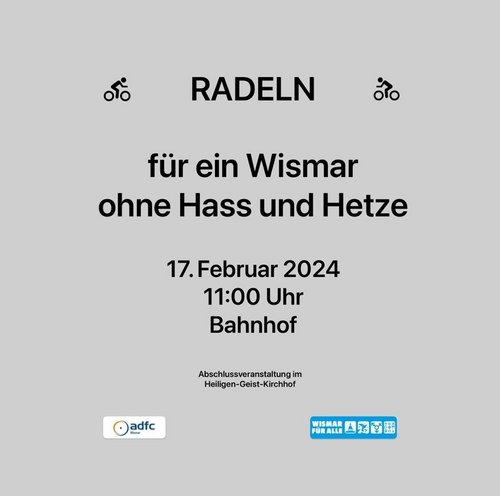Deutschlandweit wurden und werden weiterhin viele Demonstrationen gegen rechts und für die Demokratie auf die Beine gestellt. Unter dem Eindruck, dass rechte Parolen bzw. Gedankengut scheinbar immer gesellschaftsfähiger werden und die Warnungen vor einem weiteren Erstarken des rechts(extremen) Parteienspektrum und ihres Umfeldes immer lauter werden, reagiert die Zivilgesellschaft weiter und ruft zur zweiten Demonstration in diesem Jahr auf. Diesmal unter dem Motto „Radeln für ein Wismar ohne Hass und Hetze“.