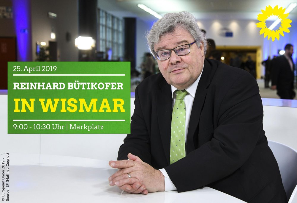 Im Rahmen einer mehrtägigen Tour durch Mecklenburg-Vorpommern macht Reinhard Bütikofer, Mitglied des Europäischen Parlaments und Ko-Vorsitzender der Europäischen Grünen Partei, Station in Wismar, um auf die Wahlen zum Europäischen Parlament und die Kommunalwahlen am 26. Mai aufmerksam zu machen.