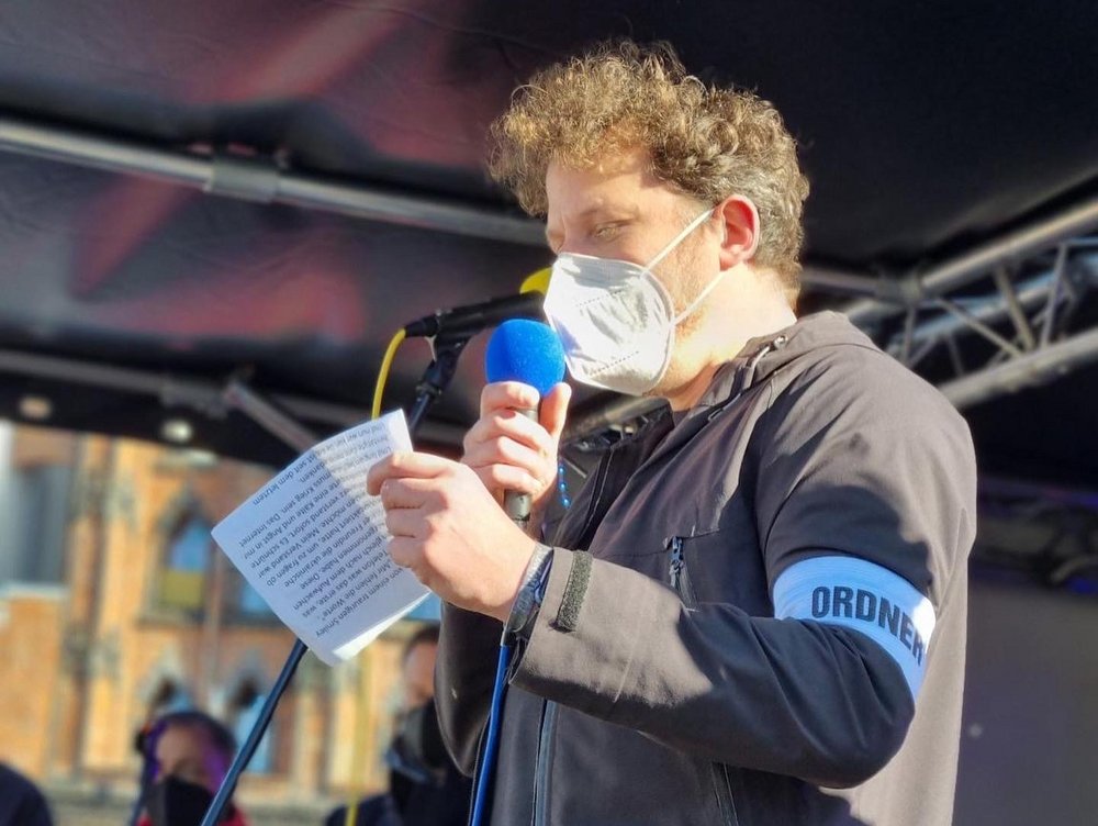 „Das Ende der Welt“ gefolgt von einem traurigen Smiley und fortgesetzt mit dem Satz „Mir fehlen die Worte“. Diese Nachricht auf meinem Telefon was das erste, was ich am Donnerstagsmorgen gleich nach dem Aufwachen von der Welt um mich wahrgenommen habe. Diese Nachricht stammte von einer Freundin die ukrainische Wurzel hat und die ich kontaktiert hatte, um zu fragen ob sie auf dieser Demo sprechen möchte. Mein Verstand war noch benebelt, aber das Herz verstand sofort. Es schnürte mir den Hals zu und ich spürte eine Kälte und Angst in mir. Und langsam begriff ich, es muss Krieg sein. Das Internet bestätigte dann meinen Gedanken.